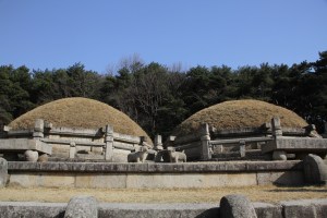 There are a few nice relics from the Koryo dynastic times in North Korea. This is one of them. King Kongmin was the 31st, and the last, of the powerful Koryo dynasty. He died in 1374. Twenty years prior to that, he felt that his love for his wife was so strong, so beautiful, that he had his and her tomb built next to each other outside his capital of Kaeson. She is on the left and he is on the right. Unfortunately the tombs were vandalized many times over the centuries, but the structures remain pretty much intact. The site is beautiful indeed, and it being in North Korea, there is nothing built up around it and no signs from anyone advertising anything at all. The area feels pristine and peaceful and was truly delightful to visit, perched high up on its mountain and offering glimpses of the West Sea.