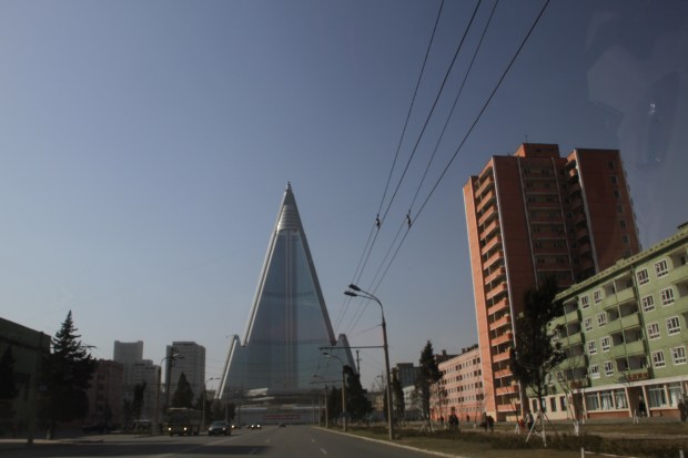 Construction of this 105-story tower has been halted for a few years. But there is talk that the building will get finished to open next year, in 2012, because that will be the 100th anniversary of Eternal Leader Kim Il Song’s birth. There is further talk that the building will contain: (1) a hotel, (2) government offices, perhaps the Bureau of International Relations, and (3) Orascom, the Egyptian mobile phone company, which financed the tower.