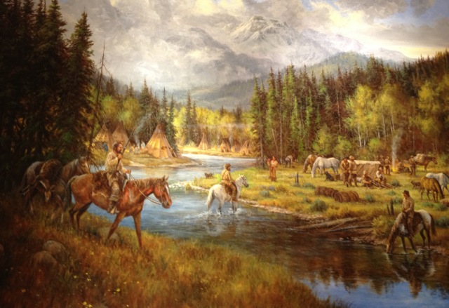 does his work next to this stunning painting by Gerry Metz depicting the team of Lewis and Clark at rest. This photo does not do it justice.