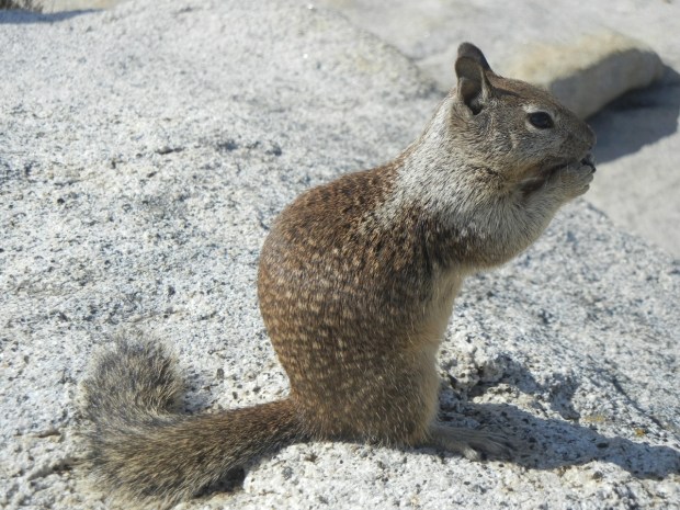 At this altitude above 8,000 feet, there are no trees and the squirrels are surviving from our leftovers. This little guy will not come with us on the last trek.