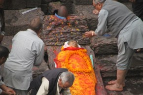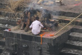 is resting on the steps of the river, where it was prepared for cremation. Only the men are allowed to come and pay their respects now. The women are the ones standing and… Continue reading
