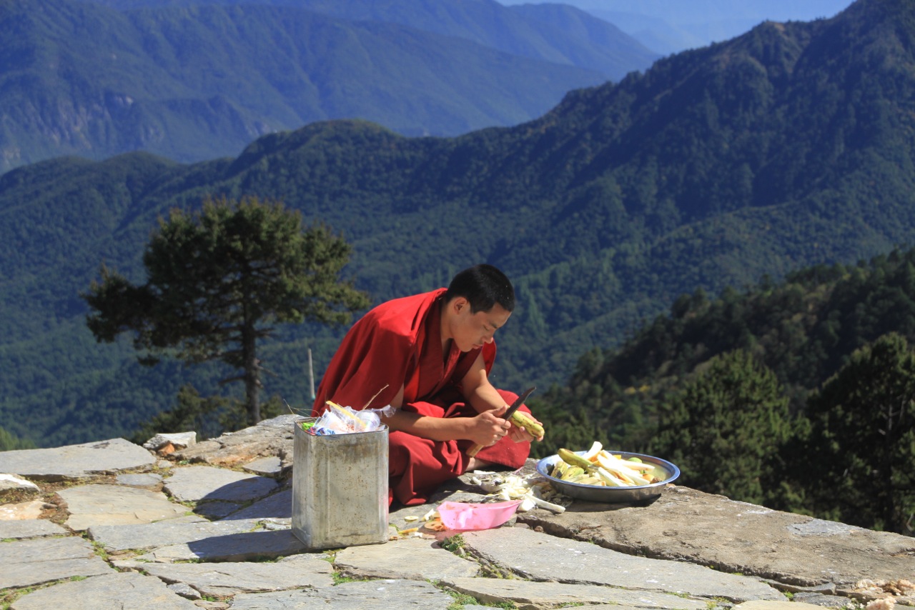 Monks typically eat two meals a day: breakfast, which can be quite early, and lunch, in the early afternoon. Since there is no dinner (typically, no food after 4 p.m.), this meal will be important
