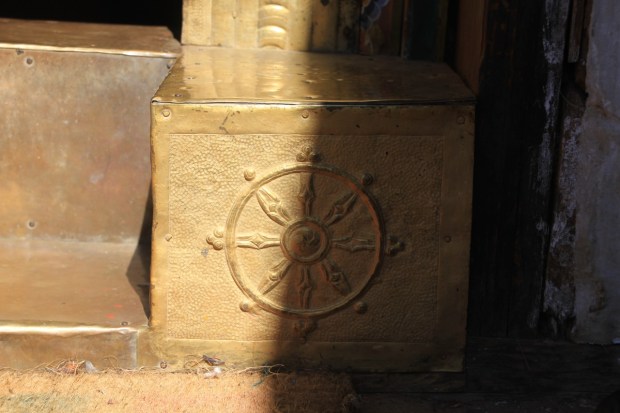 The Wheel of Law represents the symmetry, completeness and adequacy of the law, of the precepts of Buddhism: don’t kill, don’t lie, don’t take more than you need, etc.