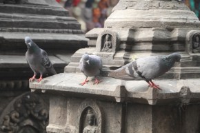 There are a lot of pigeons atop Swayambunath. They get fed, naturally.
